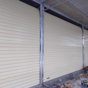 - Cấu tạo thân cửa bằng thép mạ màu , có thể kéo tay hoặc chạy động cơ .